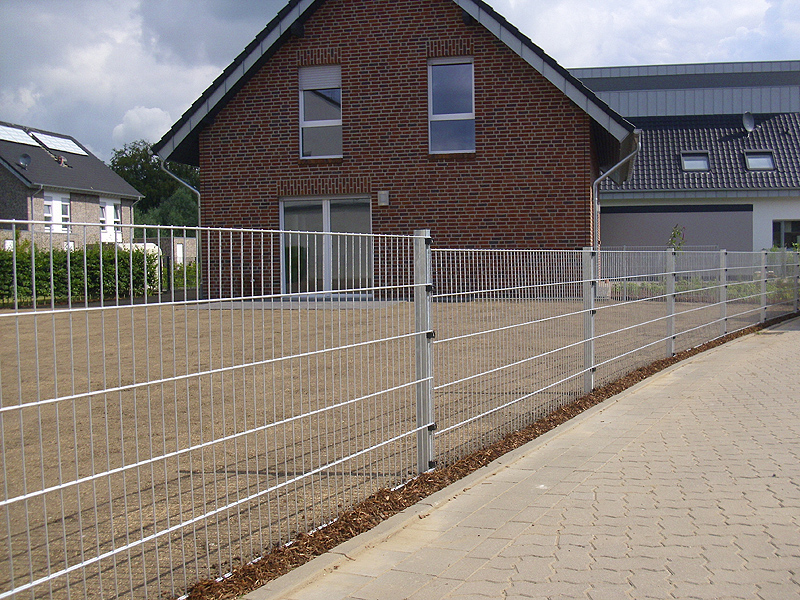 Auch für gewerbliche Objekte oder den umfassenden Schutz von Privatgrundstücken ist dieser Zaun die richtige Wahl. Thermisch verzinkt nach DIN-EN-ISO 1461 lässt sich dieses System auch mit Pulverbeschichtung in Ihrer Wunschfarbe versehen. Diese Zäune gibt es in verschiedenen Drahtstärken (leichte Ausführung 6/5/6; schwere Ausführung 8/6/8) mit Rund- oder Vierkantpfosten.