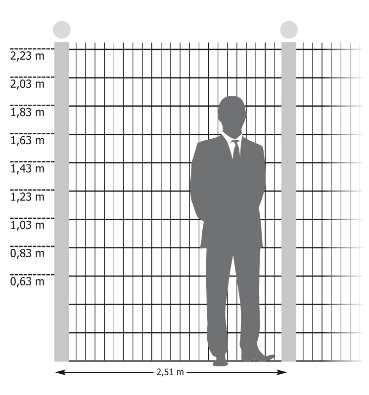 Die Gittermattenzäune sind in einer Höhe von 63 cm bis 2,43 m erhältlich - die Standardbreite einer Matte liegt bei 2,51 und kann individuell für Ihren Zaun angepasst werden.